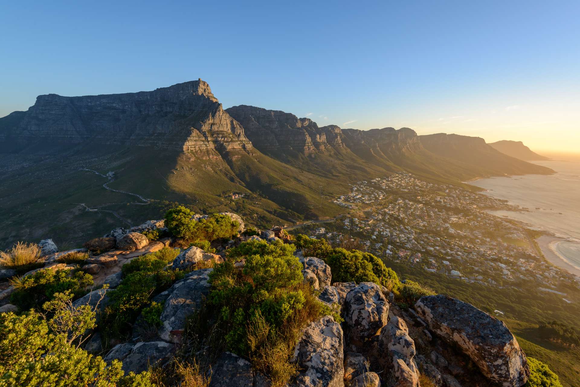 南アフリカ・ケープタウンにある丘。かつて寄港する船舶と交信するために信号旗を掲げていたことから、このような名称が付けられたといわれています。山・海の大自然とケープタウンの都会の街並みのコントラストが美しく、標高350mの高さから絶景が一望できます。
