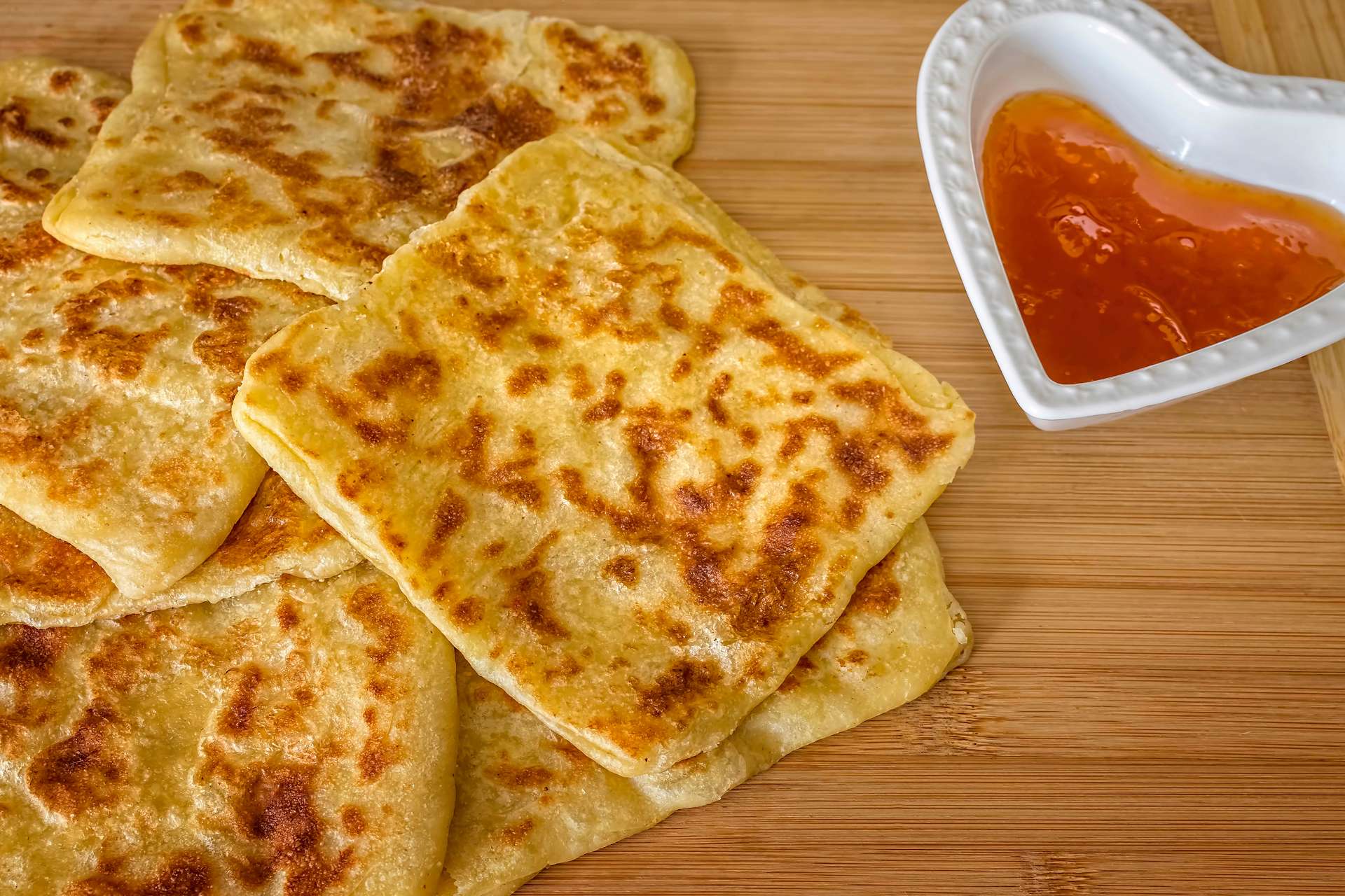 ムスンメン (Msemmen) セモリナ粉の生地を折りたたんで焼いたフラットブレッド。バターやハチミツなどをかけて食べるのが一般的ですが、生地の中に肉や野菜などを詰めて作られることもあります。モロッコ…