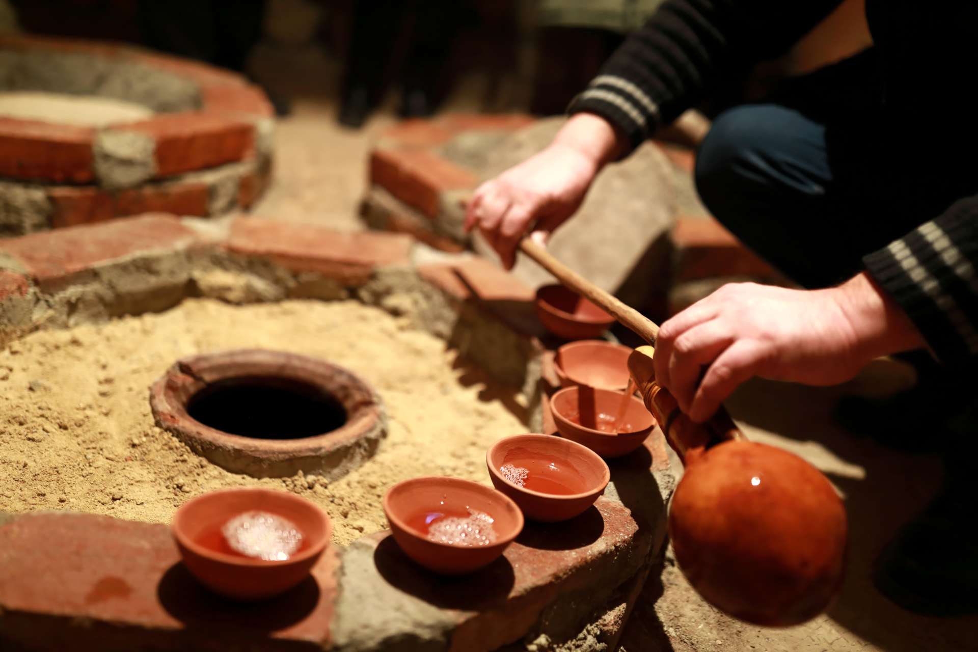 世界最古といわれるジョージアのワイン醸造方法。ジョージアのワイン造りはおよそ8,000年の歴史があり、地下に設置された卵型の「クヴェヴリ」と呼ばれる粘土製土器の中でブドウを発酵・熟成させてワインを作ります。この醸造方法は、2013年にユネスコの無形文化遺産に登録されました。