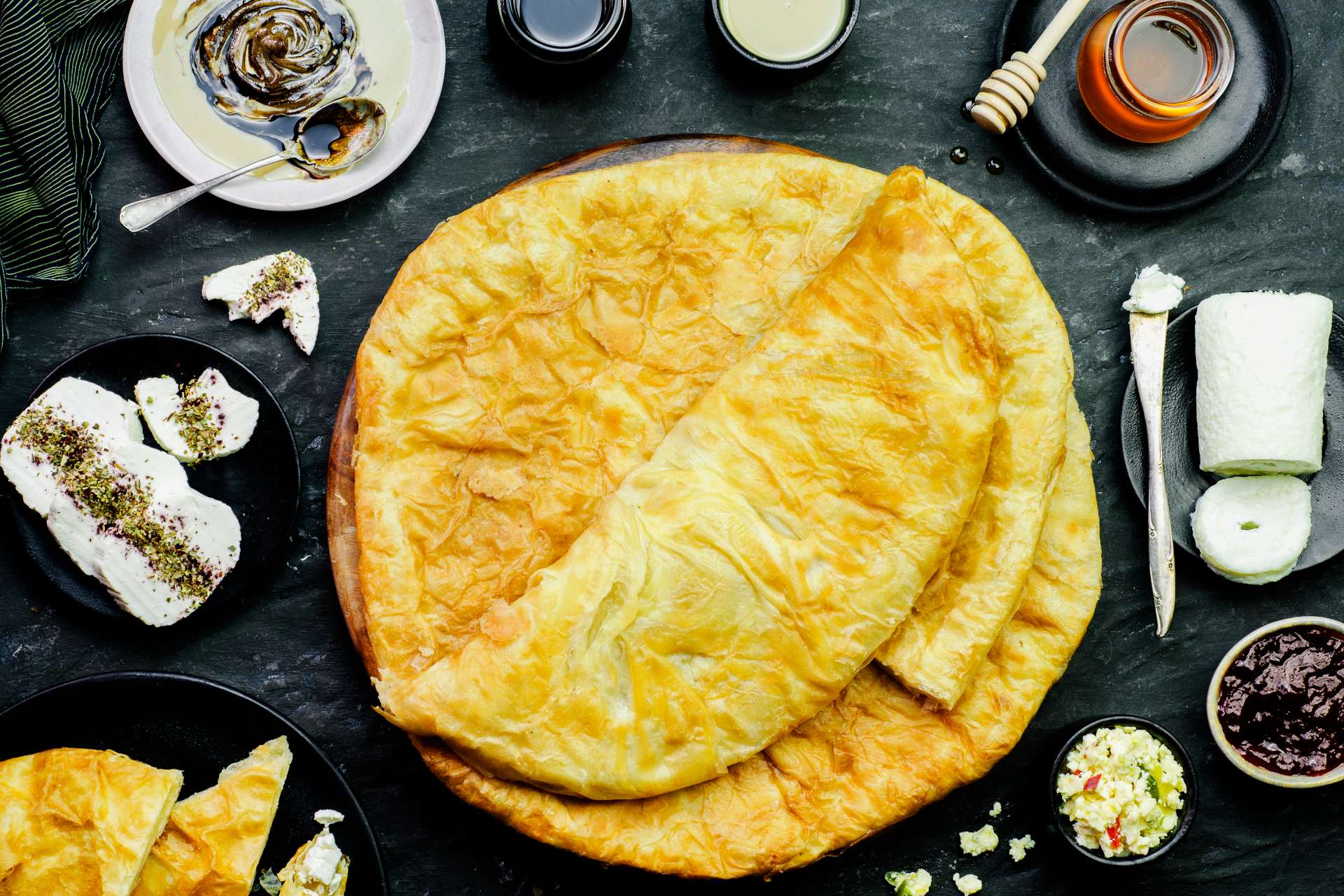古代エジプトより受け継がれる伝統的なペストリー。ハチミツやジャム、チーズ、オリーブなど甘いものから塩味のあるものまで幅広い食材とともに供されます。古代エジプト時代には神々への供え物として奉納されていた歴史をもち、現在は客人をもてなす際や、結婚式などの特別な機会に供されるのが一般的です。