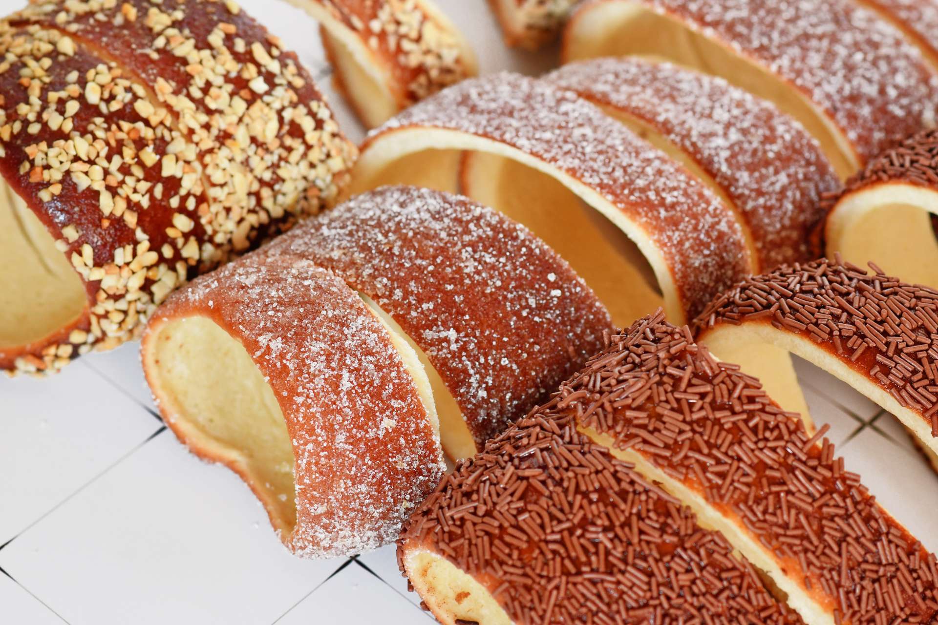 ハンガリーやチェコ、ルーマニアで親しまれている焼き菓子。ハンガリー語で 「クルトシュ(Kürtős) = 煙突」、「カラーチ(Kalács)= ケーキ」を意味します。 棒にパン生地を巻きつけて回転させながら焼き上げるお菓子で、シナモン・ココア・ナッツなど様々なフレーバーがあります。