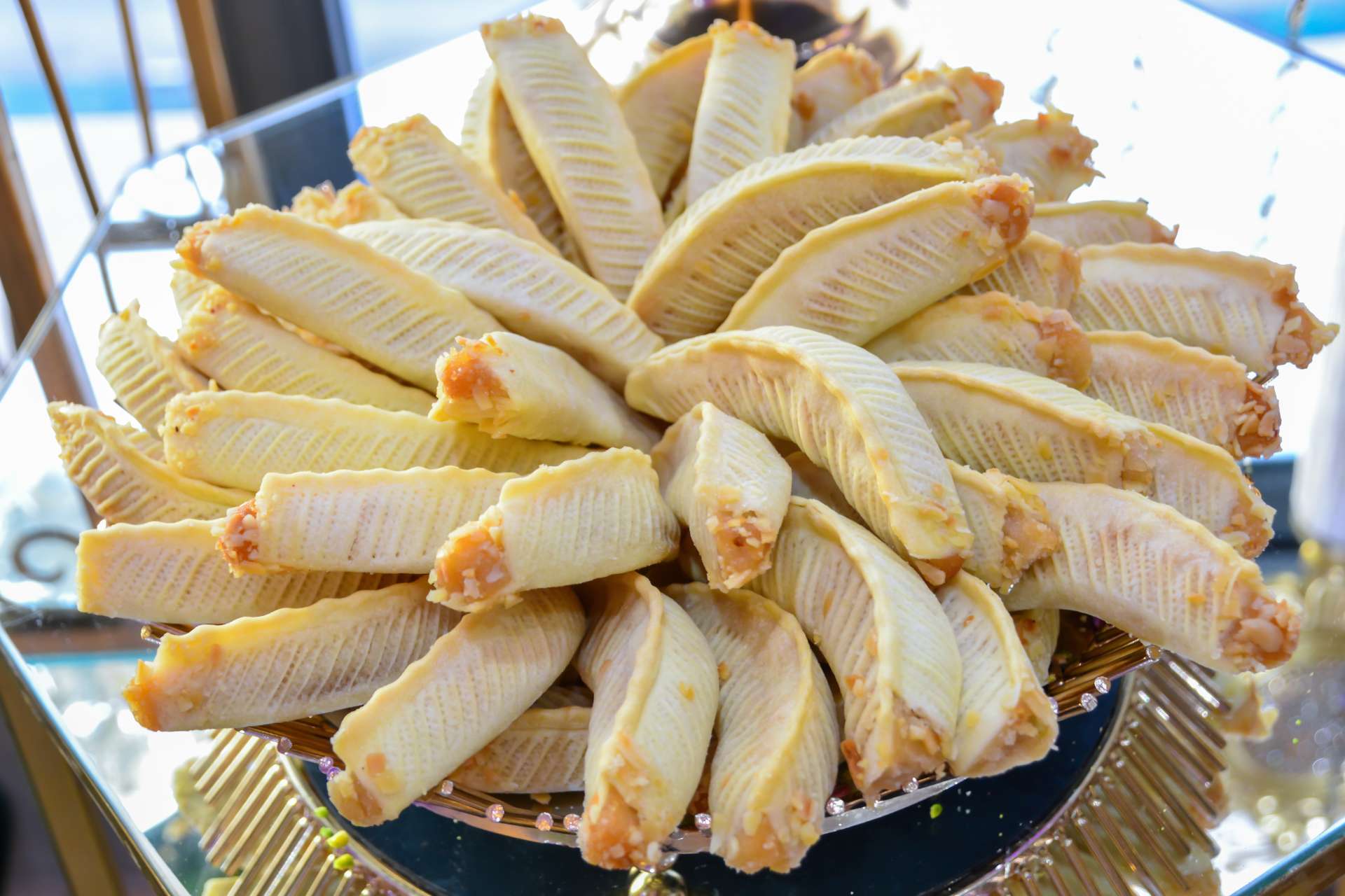 小麦粉や砂糖、バター、アーモンドなどから作られるクッキー。生地の表面がひび割れているのが特徴で、コーヒーやミントティーと一緒に供されるのが一般的です。その名称はアラビア語で「不思議な」「奇妙な」を意味する “ غريبة (Ghurayba) ” に由来し、北アフリカ・マグレブはじめとした広い地域で親しまれています。