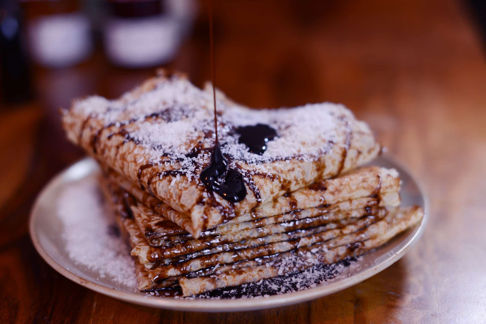 フランス・ブルターニュ地方発祥のパンケーキの一種。小麦粉で作られた薄い生地に、フルーツやチョコレートソース、ジャム、ホイップクリームなどのトッピングをして作られます。その起源はそば粉のガレットであり、12~13世紀頃に十字軍がアジアからソバをフランスに持ち帰ったのがはじまりだとされています。