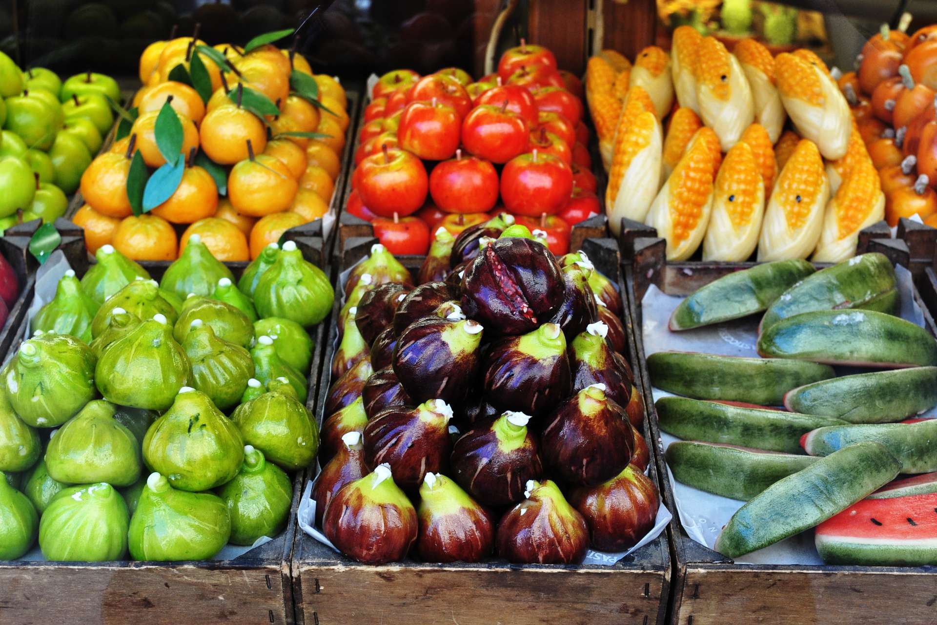 イタリア・シチリアのマジパン菓子。マジパンとは、アーモンドパウダーと砂糖を練って作られるお菓子のことで、フルッタ・マルトラーナはこのマジパンを用いて果物や野菜をかたどり、色付けして作られます。