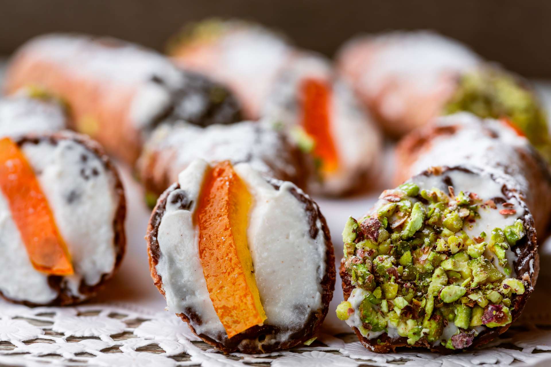 南イタリア・シチリア島発祥のお菓子。筒状のパイの中にはリコッタチーズのクリームが詰められており、ピスタチオ・オレンジピール・チョコレートなどの装飾が施されています。