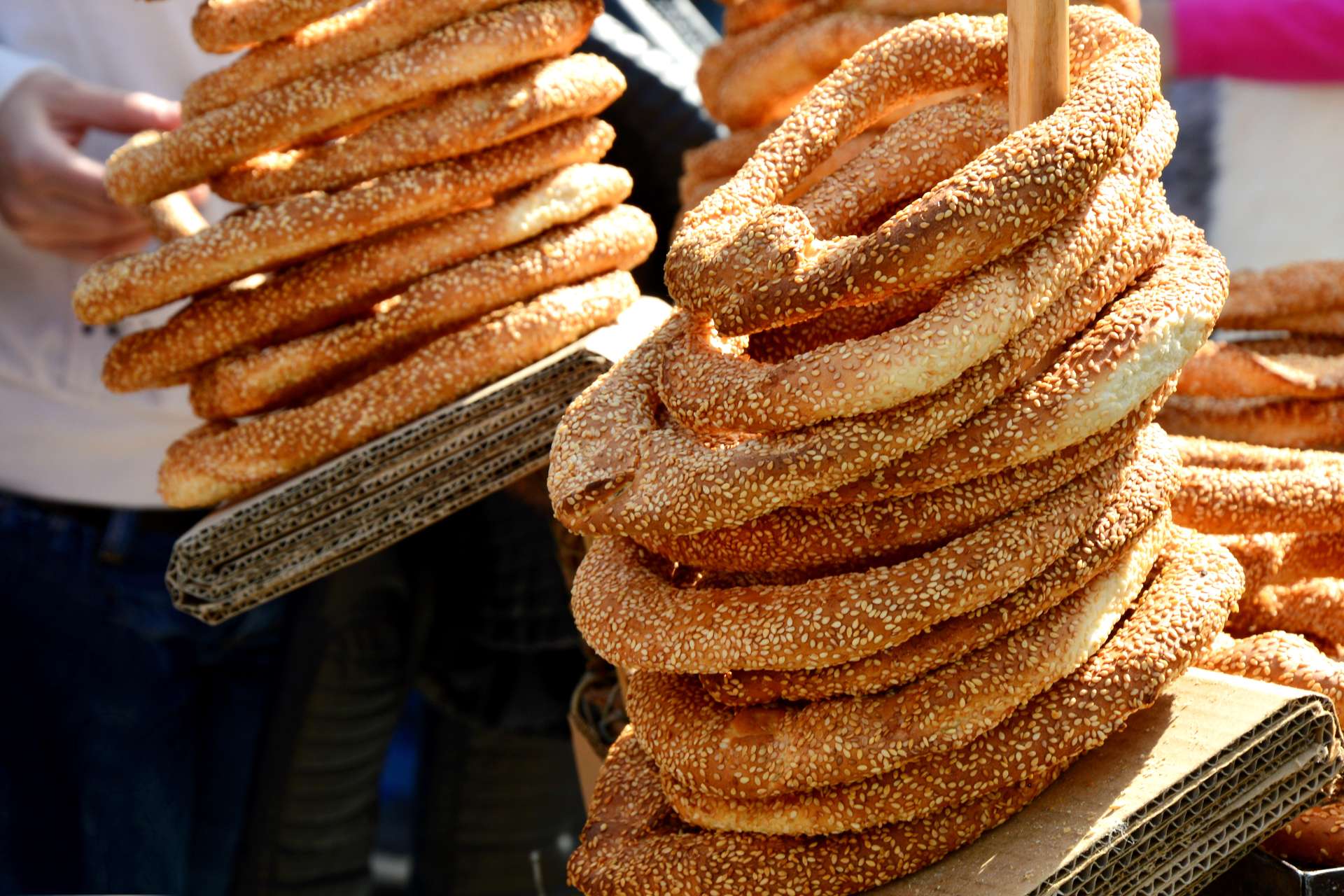 ゴマがまぶされたリング状のパン。パン屋や露店で供されており、チョコレートスプレッドやタヒニ (ゴマペースト)、チーズが入っているものなど様々な種類があります。その歴史はビザンツ帝国時代にさかのぼるともいわれており、現在では朝食の定番メニューの一つとして親しまれています。