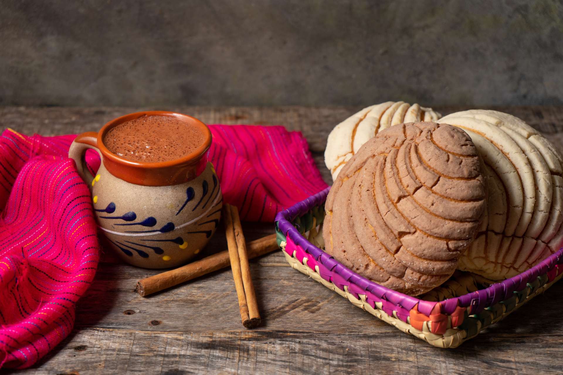 メキシコの菓子パン「パン・ドゥルセ (Pan Dulce) 」の一種。スペイン語で「貝殻」を意味するこのパンの表面は、貝殻模様をした砂糖のコーティングで覆われています。中にクロテッドクリームが入った 「コンチャ・イ・ナタ (Concha y Nata) 」もあります。そのままで頂いても、ホットチョコレートに浸して頂いても〇