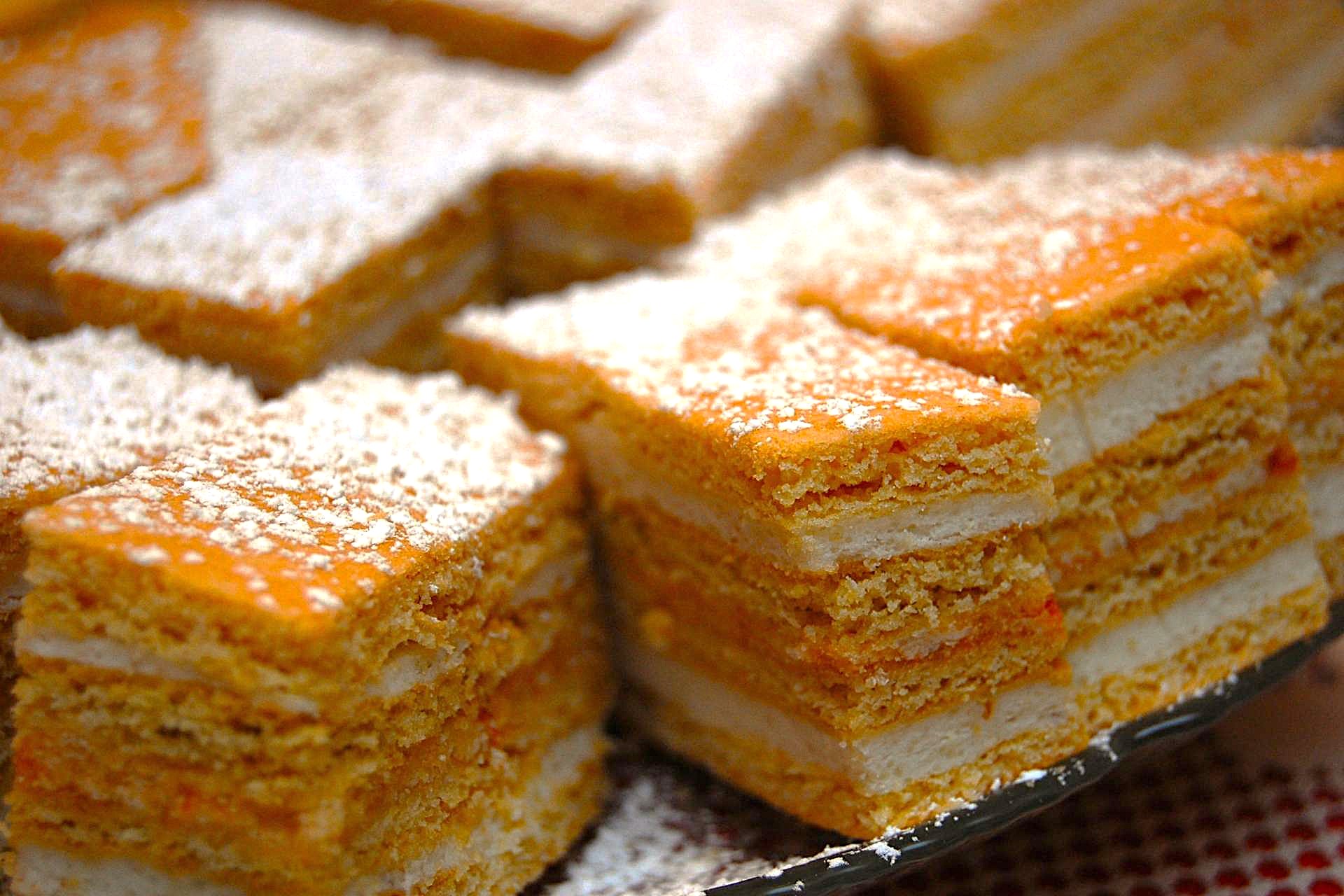 ハチミツを練りこんだ生地に、セモリナクリームとアプリコットジャムが重ねられたハンガリーのケーキ。生地の表面にはチョコレートや粉砂糖などが振りかけられており、オーストリア=ハンガリー帝国時代に生み出されたと考えられています。